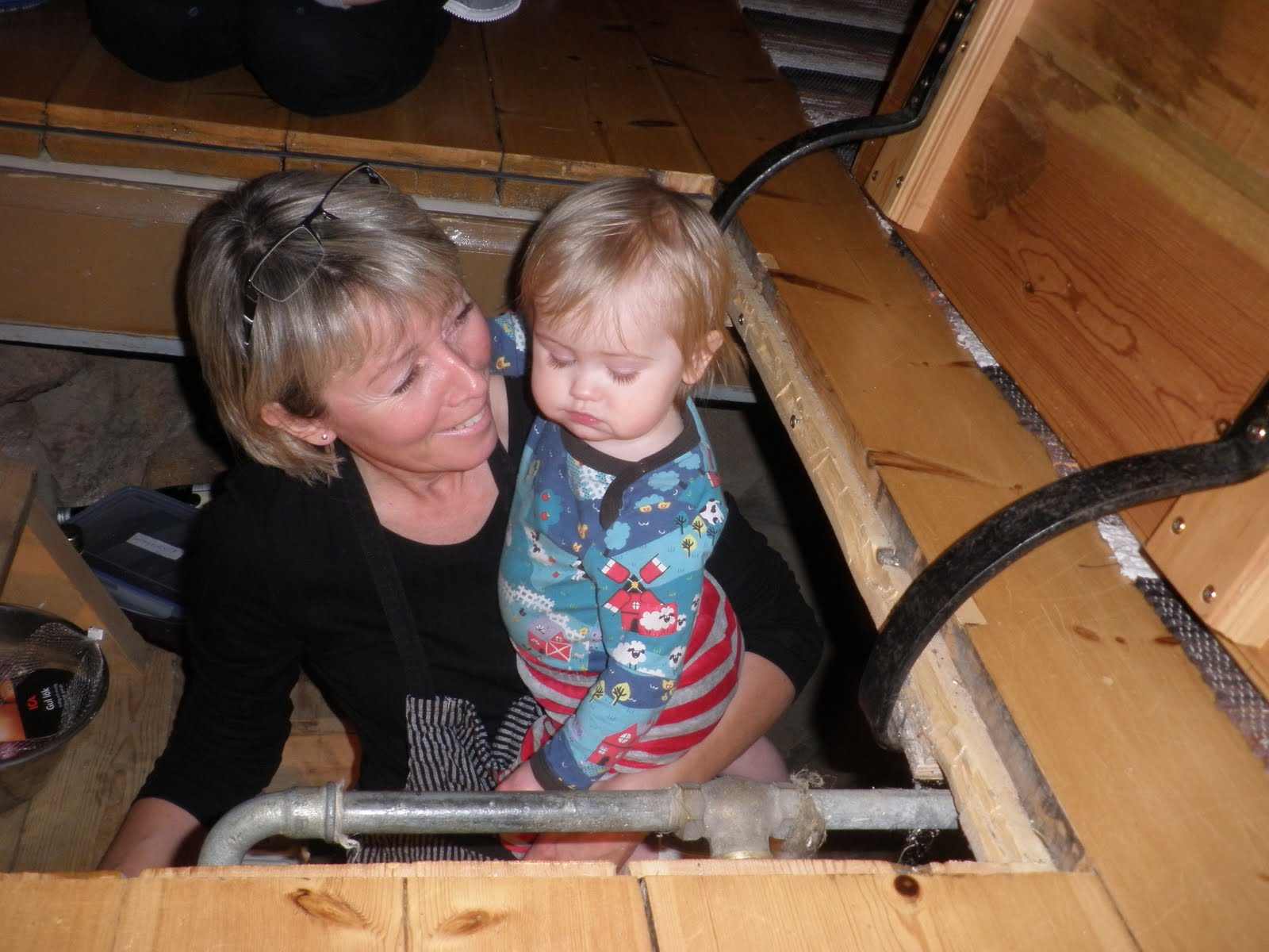 Tillställningen dominerades av Isla, snart fjorton månader.Genom att peka med hela handen, kan sätta snurr på hela - och då menar jag HELA - övriga sällskapet. Hon blir buren, hon gullas med och hon är frikostig med uppmuntrande åthävor och den som faller henne i smaken, belönas med en kyss. Den kyssen är ingen futtig puss. Nej hon kysser rejält - med öpppen mun! Eftersom hon än inte kan prata talat språk, men är en mästare på kroppspråk, är kommunikation hennes paradgren. Den som kan motstå hennes charm är en saltstod.